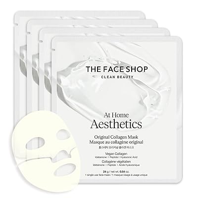 The Face Shop At Home Aesthetics Vegan Collagen Face Mask, Korean Glass Skin Care, Original & Vita-Toning Sheet Mask, Anti-aging Vitamin Hydrogel Face Sheet Mask for Firming, Elasticity, Moisturizing